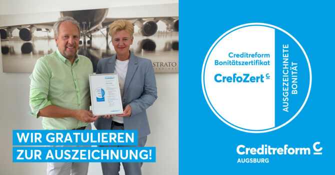 Auch im Jahr 2024 erhalten wir die Note „sehr gut“ für unsere Bonität von der Creditreform Augsburg…