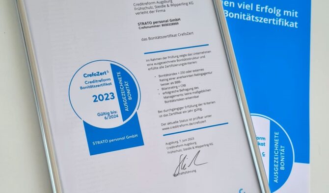 Die Strato Personal GmbH signalisiert mit dem – Creditreform Bonitätszertifikat – Ihren Kunden Stabilität und Sicherheit…