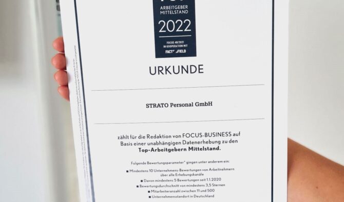 STRATO personal erhält die Auszeichnung als „TOP Arbeitgeber im Mittelstand 2022″…
