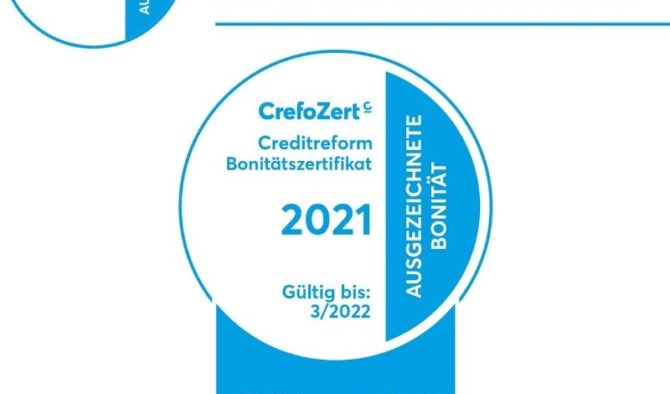 Wir erhalten 2021 die Note „sehr gut“ für unsere Bonität von der Creditreform Augsburg…